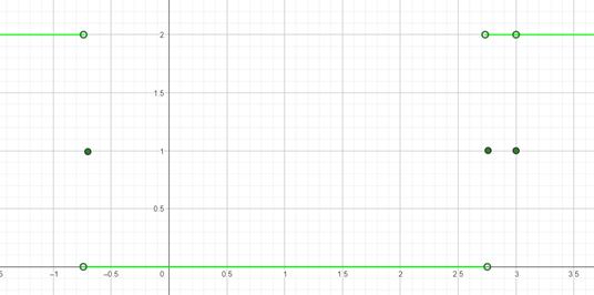 Przyrównujemy dane funkcje, aby poprzez deltę określić ilość punktów wspólnych w określonych przedziałach