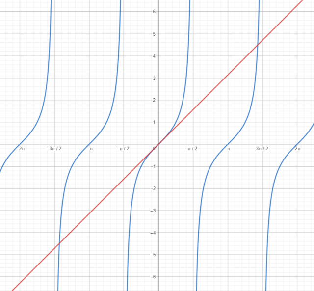W tym zadaniu musisz powiedzieć, ile rozwiązań ma równanie tg x = x.