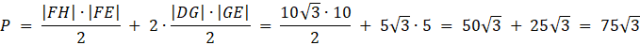 Długość boku sześciokąta foremnego ABCDEF wynosi 10. Podaj jego pole części zamalowanej.