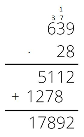 Aby pomnożyć pisemnie, zapisujemy liczby jedna pod drugą, wyrównując do prawej strony. Mnożymy przez kolejne cyfry, zapisując pod spodem wyniki. Na koniec dodajemy wszystkie wiersze z wynikami.