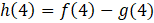 W tym zadaniu musisz obliczyć, ile wynosi h(4), jeśli funkcja h(x) jest zdefiniowana jako h(x) = f(x) – g(x) oraz wykresy funkcji f(x) i g(x) są na rysunku.