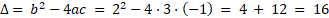 otrzymujemy równanie kwadratowe ze zmienną a, które rozwiązujemy obliczając wyróżnik trójmianu.