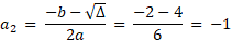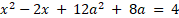 Wyznacz wartości parametru a, dla których liczba x0 = 2 była rozwiązaniem równania: x2 – 2x + 12a2 + 8a = 4.