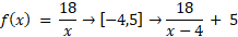 przesuniętą o 4 jednostki w prawo, a następnie o 5 jednostek w górę.