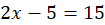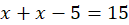 W tym zadaniu zapisz i rozwiąż równanie na podstawie podanej informacji: Suma pewnej liczby i liczby o 5 od niej mniejszej wynosi 15.