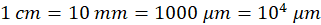 Korzystając z informacji zawartych w tabeli zamień 1 cm na mikrometry: