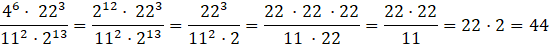 Aby obliczyć wartość tego wyrażenia, należy zamienić podane potęgi na mnożenie i skrócić takie same wyrazy.