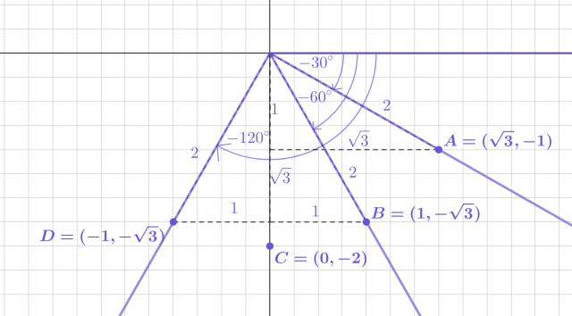 Chcąc obliczyć wartości poszczególnych funkcji, narysuj zadane kąty w układzie współrzędnych i wyznacz współrzędne punktów leżących na ich ramionach końcowych. W tym celu można skorzystać z metody przedstawionej w podręczniku, polegającej na rysowaniu odpowiednich trójkątów o kątach 30°, 60°, 90°; wykorzystywanej w poprzednim zadaniu.