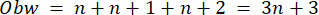 W zadaniu należy zapisać wyrażenie algebraiczne opisujące obwód trójkąta, którego długości boków są trzema kolejnymi liczbami naturalnymi, a pierwsza z tych liczb jest równa n.