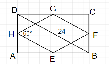 W tym zadaniu musisz obliczyć obwód i pole rombu, który został stworzony z środków sąsiednich boków prostokąta o przekątnej 24 cm. Powstały romb ma kąt ostry równy