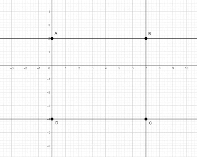 Stwórz prosty szkic pomocniczy. Wyznacz współrzędne wierzchołków prostokąta. Następnie dla niesąsiadujących ze sobą wierzchołków wykorzystaj wzór na współczynnik kierunkowy gdzie oraz równanie pęku prostych gdzie to współrzędne jednego z punktów, przez który ma przechodzić prosta. Przekształć wyznaczoną postać kierunkową do postaci ogólnej: . Postać ogólną warto podawać bez ułamków.