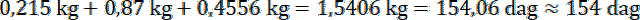 Odpowiedź: Składniki potrzebne do przygotowania ciasta ważą około 1554 dag, czyli 1 kg i 54 dag.