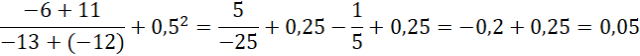 Oblicz osobno wartość licznika i mianownika, a następnie podziel licznik przez mianownik. Pamiętaj o prawidłowej kolejności działań — działania w nawiasach, mnożenie (potęgowanie) i dzielenie, dodawanie i odejmowanie.