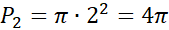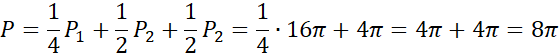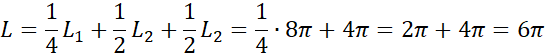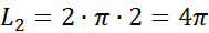 Zauważ, że figura składa się z części kół o promieniach 2 i 4. W pierwszej kolejności oblicz pola i obwody pełnych kół o tych promieniach. Skorzystaj ze wzorów