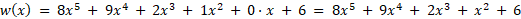 Wiedząc, że każda liczba naturalna jest wartością pewnego wielomianu w dla x = 10. Współczynnikami takiego wielomianu są kolejne cyfry zapisu dziesiętnego tej liczby, wyznacz wielomian, dla którego w(10) = 892 106.