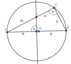 Skorzystaj z podobieństwa trójkątów AIJ i ACB, aby uzależnić długość R od a. Te trójkąty są do siebie podobne na podstawie cechy kkk (jeden kąt prosty i wspólny kąt przy wierzchołku A). Następnie skorzystaj z twierdzenia Pitagorasa w trójkącie ABC, aby wyznaczyć zależność b od a. Następnie oblicz stosunek