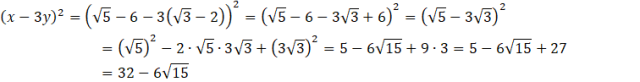 Na początku tego zadania musisz skorzystać ze wzoru na kwadrat sumy (a + b)2 = a2 + 2ab + b2 oraz wymnożyć przez siebie nawiasy. Po wyliczeniu i zredukowaniu sumy musisz skorzystać ponownie ze wzoru na kwadrat sumy. Na końcu musisz podstawić za x i y wartości z polecenia i wyliczyć wartość.