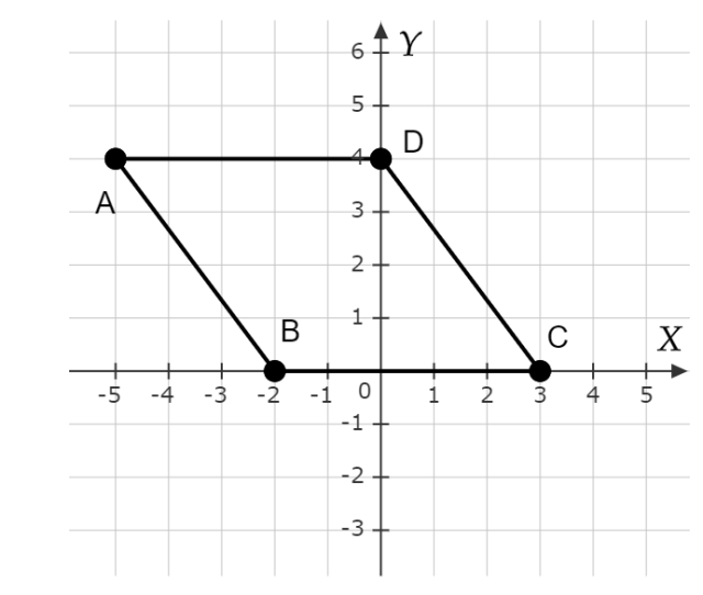 Większość rzeczy w tym zadaniu będziesz w stanie określić z rysunku. Zaznacz trzy znane punkty w układzie współrzędnych. Czworokąt ma być równoległobokiem, wobec tego łatwo możesz zauważyć, jakie współrzędne ma punkt