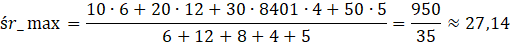 Oblicz największą możliwą średnią i sprawdź, czy jest ona większa od 28. Jeśli tak to ta średnia może wynosić 28. Najwyższa możliwa średnia jest mniejsza od 28, czyli taka średnia nie może istnieć.