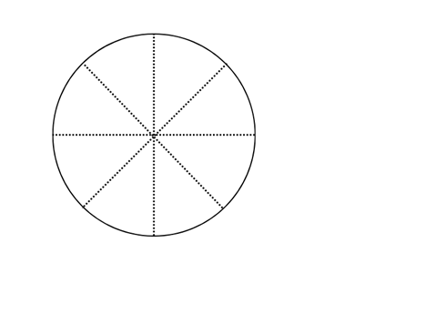 Jeżeli złożysz koło na pół, a następnie otrzymane półkole znowu na pół, i otrzymaną ćwiartkę po raz trzeci na pół to po rozłożeniu linie utworzą ośmiokąt foremny.
