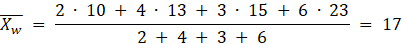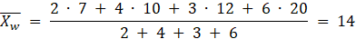 Średnia ważona tych liczb wynosi 14.