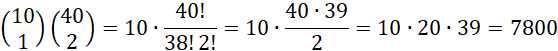 Wyciągasz trzy losy. Skoro jeden los ma być wygrywający, to musisz wyciągnąć jeden taki los z 10 losów wygrywających oraz 2 pozostałe z 40 losów przegrywających otrzymując: