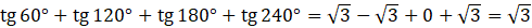 Dana jest suma: tg α + tg 2α + tg 3α + tg 4α. Wyznacz jej wartość dla α = 60°.