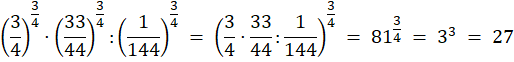 Skorzystaj z zasad działań na potęgach i połącz ze sobą podstawy potęg o takich samych wykładnikach. Następnie oblicz wartość wyrażenia.