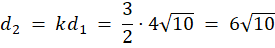 Korzystając z twierdzenia Pitagorasa wyznacz przekątną w pierwszych prostokącie. Następnie oblicz skalę podobieństwa większego czworokąta do mniejszego i przemnóż przez nią długość przekątnej w pierwszym prostokącie.