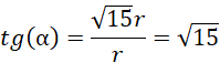 O pewnym stożku wiadomo, że jego promień jest cztery razy krótszy od jego tworzącej. Wyznacz tangens kąta między tworzącą stożka a płaszczyzną podstawy.
