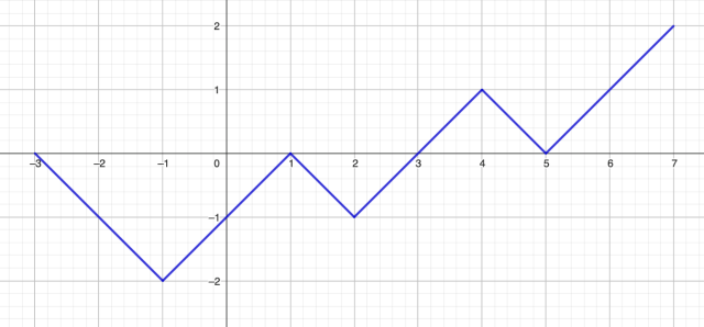 Funkcja przyjmuje wartości dodanie dla przedziałów: wartości ujemne dla przedziałów: a miejscami zerowymi tej funkcji są argumenty .