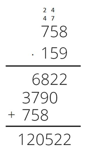 Aby pomnożyć pisemnie, zapisujemy liczby jedna pod drugą, wyrównując do prawej strony. Mnożymy przez kolejne cyfry, zapisując pod spodem wyniki. Na koniec dodajemy wszystkie wiersze z wynikami.