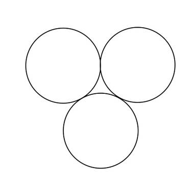 Narysuj figurę złożoną z jednakowych okręgów tak, by otrzymana figura miała trzy osie, wzdłuż których dwie połowy figury pokryją się idealnie ze sobą po złożeniu.
