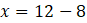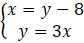 Wiemy, że liczba x jest o 8 mniejsza od liczby y, co możemy zapisać jako: