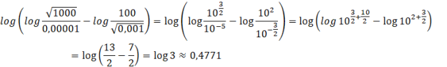 Najpierw oblicz „wewnętrzny” logarytm, a następnie korzystając z tablic logarytmów dziesiętnych podaj przybliżoną wartość.