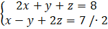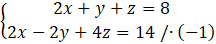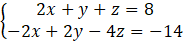 2x + y + z – 2x + 2y – 4z = 8 – 14