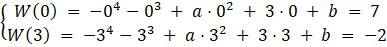 Wiedząc, że wielomian dla x = 0 przyjmuje wartość 7 a dla x = 3 wartość -2. Wykonaj podstawienie: