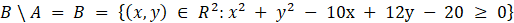 Punkty nienależące do koła o środku w punkcie S i promieniu r to zewnętrze koła, które można opisać nierównością: