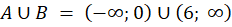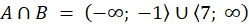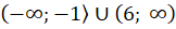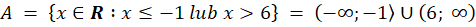 Zbiór A to zbiór wszystkich liczb rzeczywistych mniejszych lub równych -1 lub większych od 6, czyli