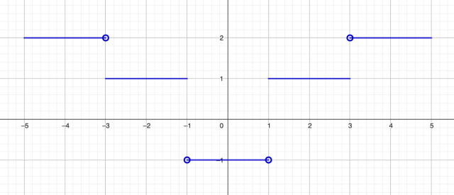 Funkcja przyjmuje wartości dodanie dla przedziałów wartości ujemne dla przedziału Funkcja nie ma miejsc zerowych, ponieważ nie ma takiego x, aby .