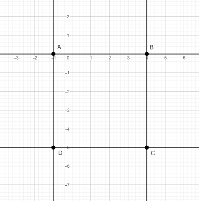 Stwórz prosty szkic pomocniczy. Wyznacz współrzędne wierzchołków prostokąta. Następnie dla niesąsiadujących ze sobą wierzchołków wykorzystaj wzór na współczynnik kierunkowy gdzie oraz równanie pęku prostych gdzie to współrzędne jednego z punktów, przez który ma przechodzić prosta. Przekształć wyznaczoną postać kierunkową do postaci ogólnej: . Postać ogólną warto podawać bez ułamków.