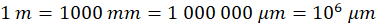 Korzystając z informacji zawartych w tabeli zamień 1 m na mikrometry: