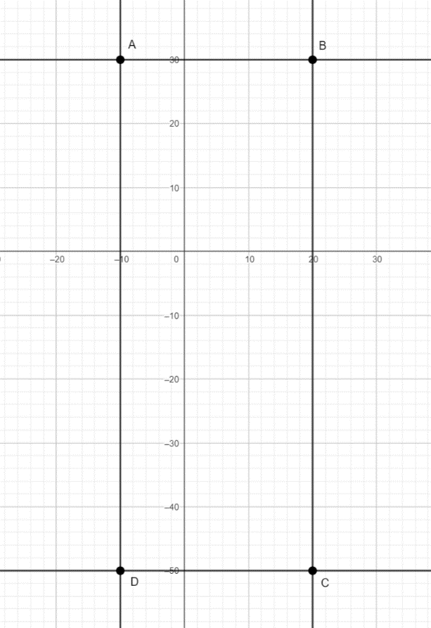 Przedstaw równania ogólne i kierunkowe prostych, które zawierają przekątne prostokąta ograniczonego przez proste x=10,x=20,y=50,y=30.