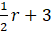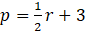 Wiemy, że liczba p jest o 3 większa od połowy liczby r, co możemy zapisać jako: