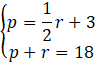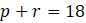 I wiemy, że suma liczb p i r jest równa 18, co możemy zapisać jako: