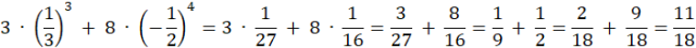 Pamiętając o kolejności działań, wykonaj potęgowanie, następnie mnożenie i na końcu dodawanie: