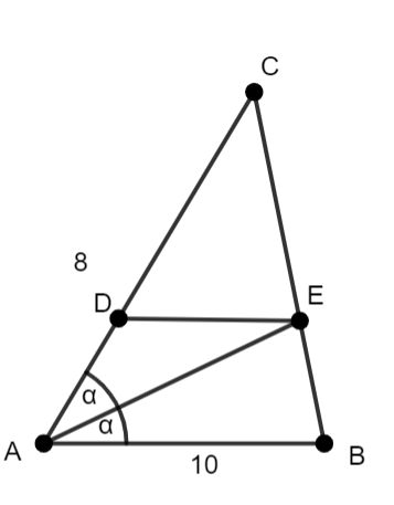 W tym zadaniu skorzystaj z twierdzenia o podziale boku przez dwusieczną kąta wewnętrznego trójkąta oraz z cechy podobieństwa trójkątów.