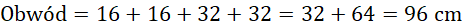 Podstawiasz do wzoru na pole niewiadomą, którą jest długość boku prostokąta. Z polecenia wynika zależność, że jeden z boków jest dwukrotnie dłuższy od drugiego. Powstaje równanie z niewiadomą w drugiej potędze. Dzielisz najpierw obie strony równania przez liczbę, która stoi przy niewiadomej. Następnie wynik musisz spierwiastkować. Otrzymujesz długość krótszego boku, potem musisz obliczyć długość dłuższego boku. Następnie podstawiasz dane do wzoru na obwód. Obliczasz obwód, sumując wszystkie długości boków. Odejmujesz od obwodu działki bramę, ponieważ w jej miejscu nie będzie siatki.