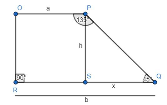 Wysokość jest równa x, ponieważ kąty mają po 45°, więc trójkąt jest równoramienny.