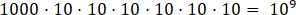 Zauważ, że 1000 to trzecia potęga liczby 10. Licząc zera, możemy obliczyć wykładnik potęgi liczby 10.
